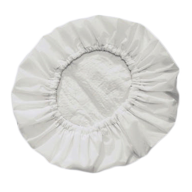 Cuffia shampoo monouso, imbustata singolarmente, completa di due manopole.